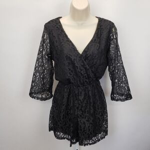 Everly black lace romper size small made in USA