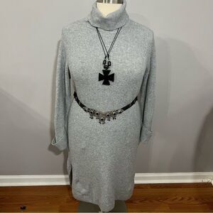 Everly gray cuffed long sleeve cowl neck sweater dress - L