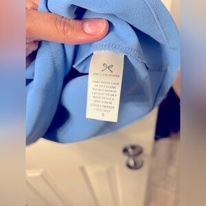 Very pretty light blue shift dress with scalloped detail at sleeves. It is a little lighter shade of blue than it looks in the photos - more like a Carolina Blue.