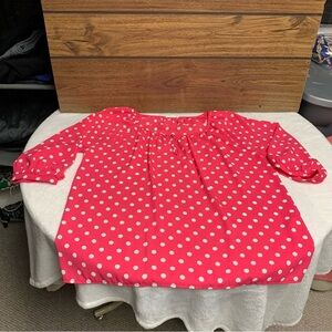 Everly pink polka dot top size large single button at the neckline
