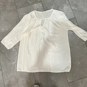 Everly white semi-sheer blouse, vneck, 3/4 sleeves, can wear with our without camisole