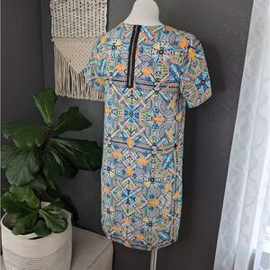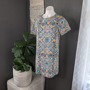 Everly abstract shift dress, with zipper down the back. Perfect dress for the warm weather!