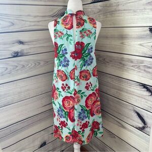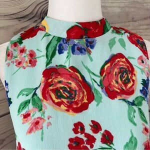 Everly Size medium Light blue floral sleeveless shift dress High neck with button closure 100% polyester Like new