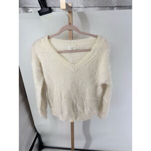 Everly Ivory Pullover V-neck Sweater Size Medium Eyelash Feather Texture