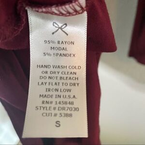 Everly Long Sleeved Gather Front Burgundy Dress Women's Small. This soft jersey knit type of dress is super comfortable and has a cute detail in the front. In excellent preowned condition. It’s a rayon, modal and spandex blend.