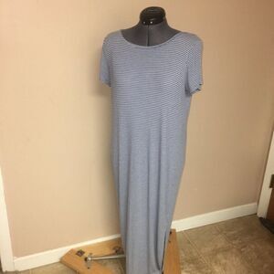 Super cute and comfy maxi dress. Tag says size small, but I am plus size and this dress fits fine. Bust measures 45 inches. No stains, rips or tears.