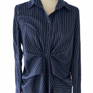 Everly Women’s Blue and White Striped Button Blouse Size Large