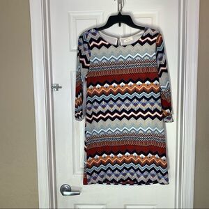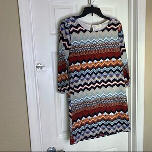 Everly, Women's Brown And Multicolored Chevron Dress - Size: Small