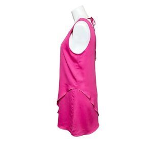 Everly hot pink sleeveless dress with layered bottom size M. Style DR8092. Open back with tie at the neckline. Good condition. 100% polyester. Made in the USA. Length 35” Chest 18.5”.