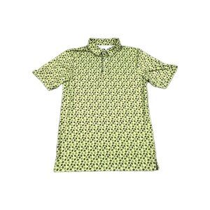 Eversole Run Polo Shirt Mens Medium Green Bald Man Print Short Sleeve Collared.