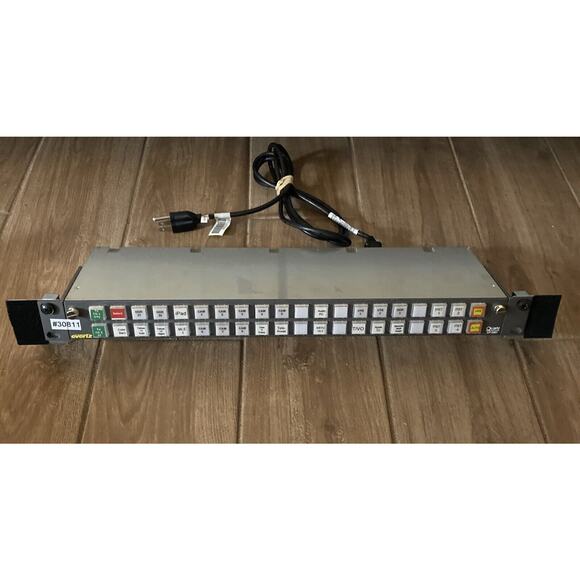 The Evertz CP-3201 is a 1RU (1 rack unit) control panel with 40 buttons. It's designed for control and operation within broadcast and professional video environments.