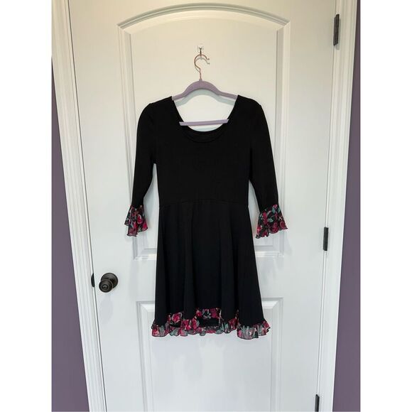 Every Body Every Wear Black Pink Floral Ruffle Dress Size Small