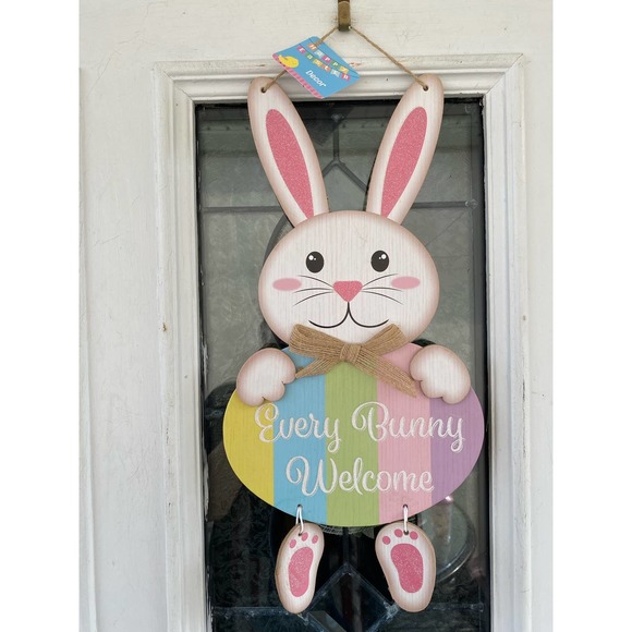 Every Bunny Welcome Easter Bunny Rabbit Hanging Sign Spring Wall Door Decor