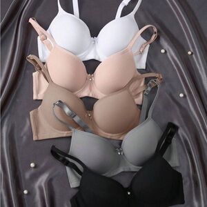 Set of 5 neutral every day bra set with bow and rhinestone detail
