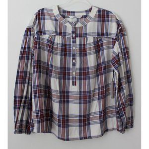 Every Moment Volume Top Long Sleeves Multicolor Plaid Blouse Career Size Medium