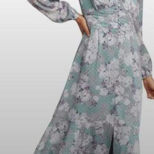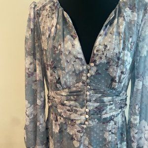 “Every New” Long Sleeve High-Low Dress – V-Neck, Defined Waist, Size 8