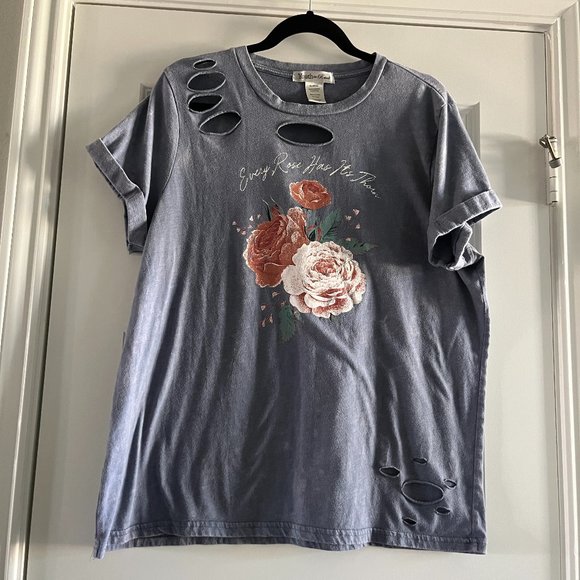 Worn just a handful of times. Youth in Revolt blue tee with torn detailing and rolled sleeves. Size XL.