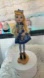 Charming doll with a blue dress and gold accents. Features long blonde hair and a cute bow.
