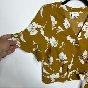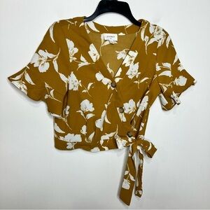 Every floral wrap blouse mustard yellow white size small