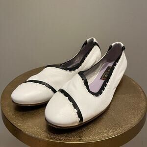 Everybody by BZ Moda 7M (EU 37) Leather Flats | Rare White & Black Scalloped Vtg