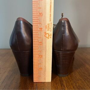 Very soft leather, gently worn, very good preowned condition. Women’s size 6.5 or 37 Eur. Brown leather two toned heeled booties. Questions? Leave a comment below!