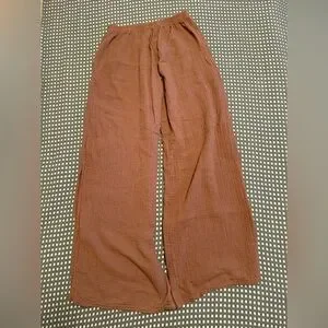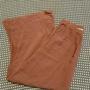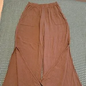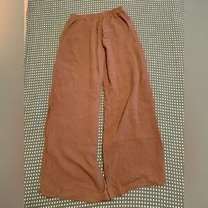 Chic relaxed pull on wide legged pant with stem flattering side slits and front pockets in 100% cotton crinkle gauze . Pairs with the Penny Top (separate post)