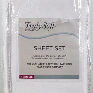 Get warm and cozy with Truly Soft Everyday Sheets. With revolutionary softness from finer yarns and finishes, resulting in a truly incredible soft feel to these sheets. After a stressful day, you deserve Truly Soft sheets for a relaxing, peaceful night’s sleep, necessary for optimal health and well-being. These deep pocket sheets fit your mattress and stay tight with full elastic on all four sides. As an added bonus, these sheets are benzoyl peroxide-resistant so that you can sleep in your acne medication without fear of damaging your sheets. Coordinates with other Truly Soft items. The fabric is 100% polyester with our special Truly Soft treatment. This item is machine washable, but care should be taken to wash in appropriate size equipment to avoid damage. Includes: 1 fitted sheet 39x80 inches with 16 inch pocket, 1 flat sheet 69x102 inches, and 1 pillow case 20x32 inches.