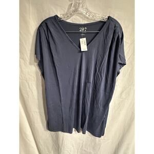 24/7 by Maurices Navy Everyday T-Shirt Womens 1X Casual Short Sleeve V Neck NWT