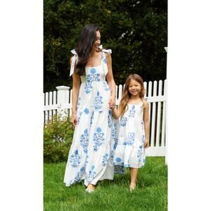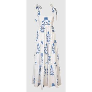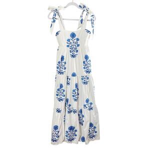 Everyone Loves The Weekend Nantucket Block Print Tie Shoulder Maxi Dress NEW Sm