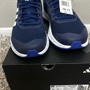 Adidas sneakers in dark blue with white stripes. Ideal for sports and casual wear. Never been worn. Brand New.