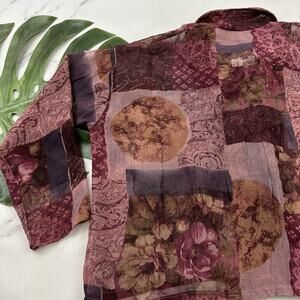 Everything Works Donna Jessica Blouse Top Size 1 S Purple Mixed Floral Patchwork