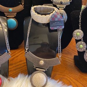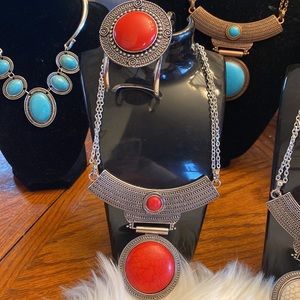 In this bundle you have six beautiful sets all comes with earrings except one. The brass and blue doesn’t have a matching earrings.