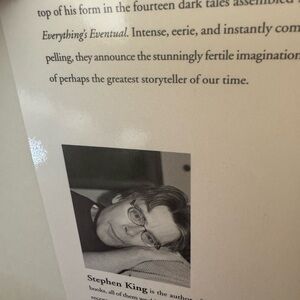 The product is a vintage 2002 hardcover edition of "Everything's Eventual: 14 Dark Tales" by Stephen King, published by Scribner. This collection of horror stories spans 464 pages and showcases King's talent for creating chilling and supernatural narratives. With an item length of 9.2 inches, item height of 1.6 inches, and item weight of 28.3 ounces, this book is a must-have for fans of the horror genre and occult supernatural themes, making it a valuable addition to any Stephen King collection.