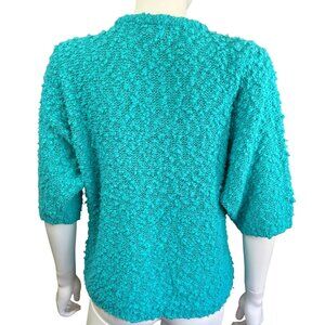 Evian Ltd Vintage Button-Up Textured Knit Sweater Turquoise Blue Size L 1980s