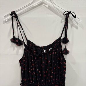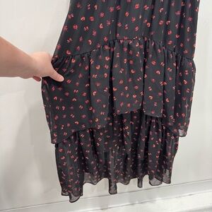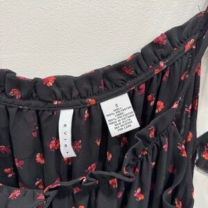 Evie Black Flower Printed Tie Shoulder Strap Midi Maxi Long Dress Layered Ruffle