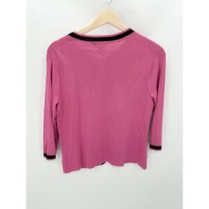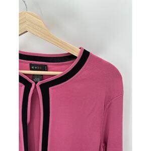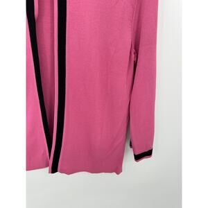 Evie Sweater Women SMALL PETITE Pink Black Trim Hook & Eye Knit Cardigan