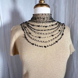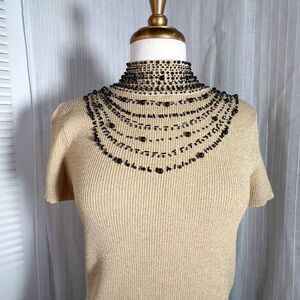 Evie | Women’s | Sweaters | L | Y2k Gold Metallic Beaded Short Sleeve Sweater Top