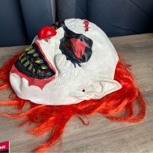 Evil Clown Halloween Rubber Mask Red Hair Teeth Horror - Spirit Halloween, good preowned Adult mask. See photos.