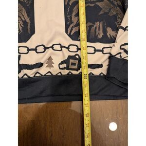 Equal parts creepy and cozy. This unbranded polyester depicts aspects of the "Evil Dead" movies — complete with chainsaws, the Necronomicon, and a lonely cabin in the woods. It’s got that “ugly Christmas sweater” vibe but filtered through a horror movie fever dream.