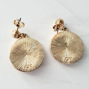 Evil Eye Gold Plated Dangle Earrings White and Blue Pavè Crystals Dangle 1 1/4" Circle 1" #CGJ7