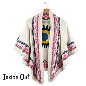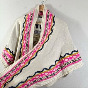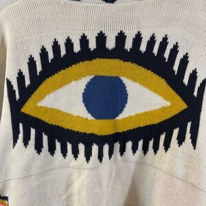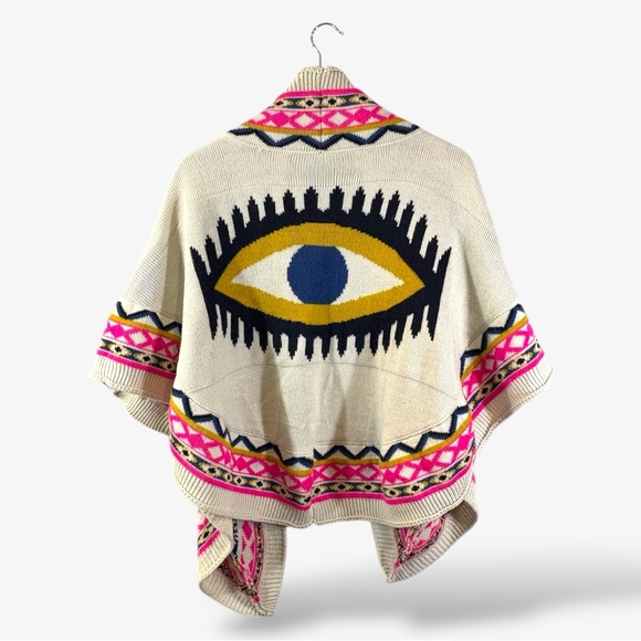 Evil Eye Poncho One Size Cream Pink Multicolor Boho Sweater Knit Wrap Shawl