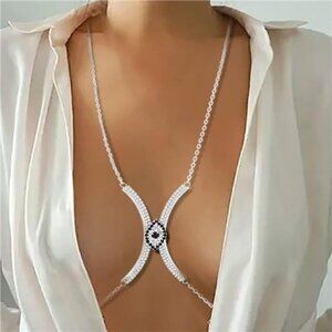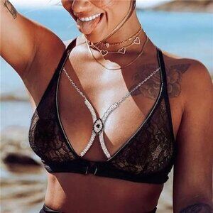 Evil Eye Rhinestone Chest Bracket Bra Sexy Silver Rhinestone Chest Chains