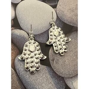 These beautiful dangling earrings feature an evil eye design with silver-tone accents and sparkling crystals. They're the perfect accessory to add a touch of mystique and protection to any outfit.