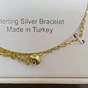 Evil Eye Sterling Silver 925 Turkish Bracelet, Yellow Gold Plated over Sterling Silver