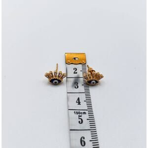 Evil Eye Stud Earrings with CZ Eyelashes Gold Tone Enamel Fashion Jewelry New