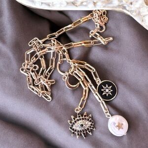 The evil eye, an image recognized and used as a sign of protection in many times throughout history, the evil eye has been traditionally believed to provide defense against someone wishing you ill will. Guards against jealousy and envy. Great gift for yoga lovers. Evil eye lovers. 18 inches long. 3 inch extender. 2.5 inch drop. Take care of your jewelry and it will gleam for years.