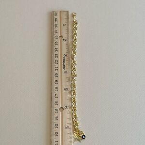 Elegant gold chain bracelet featuring a stylish charm. Perfect for adding a touch of sophistication to any outfit.