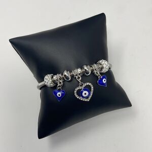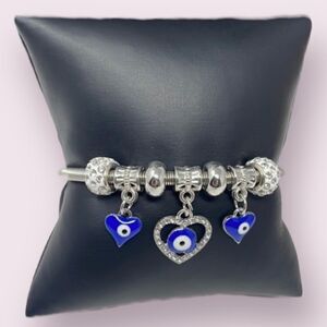 Evil Eye Heart Charm Stretchy Bangle Bracelet