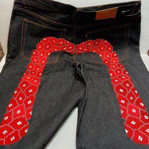 Evisu - Floral Red Embroidered Denim Shorts Size 40"W X 15"I (new - never worn, no tags)