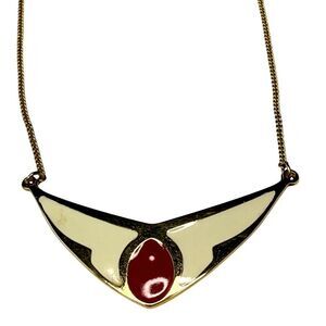 Evoke Gold Enamel Statement Necklace with Red Cabochon Accent**